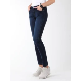 Přiléhavé dámské džíny s vysokým sedem a zúženými nohavicemi.