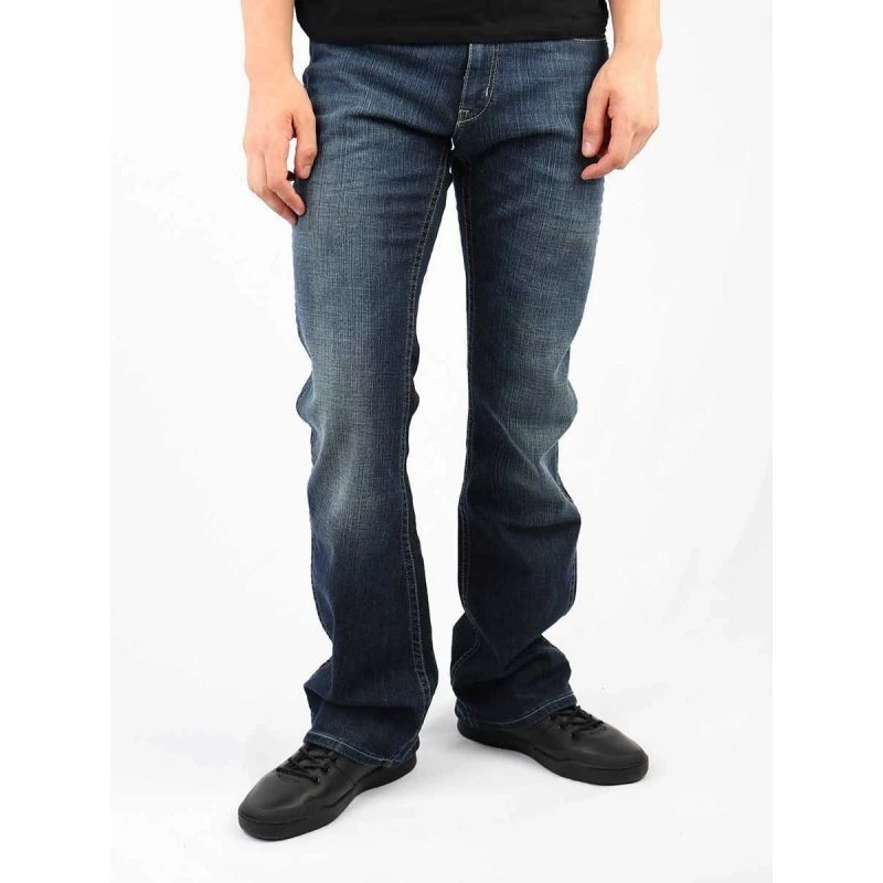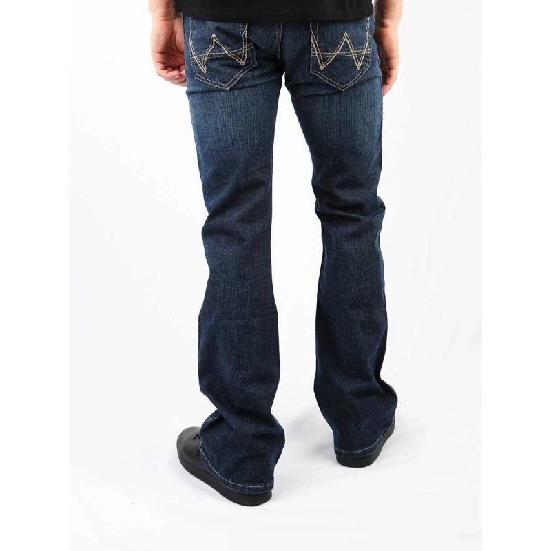 Pánské džínové kalhoty regular střihu s rozšířenými nohavicemi, zapínáním na zip a nášivkou s logem výrobce na zadní kapse.