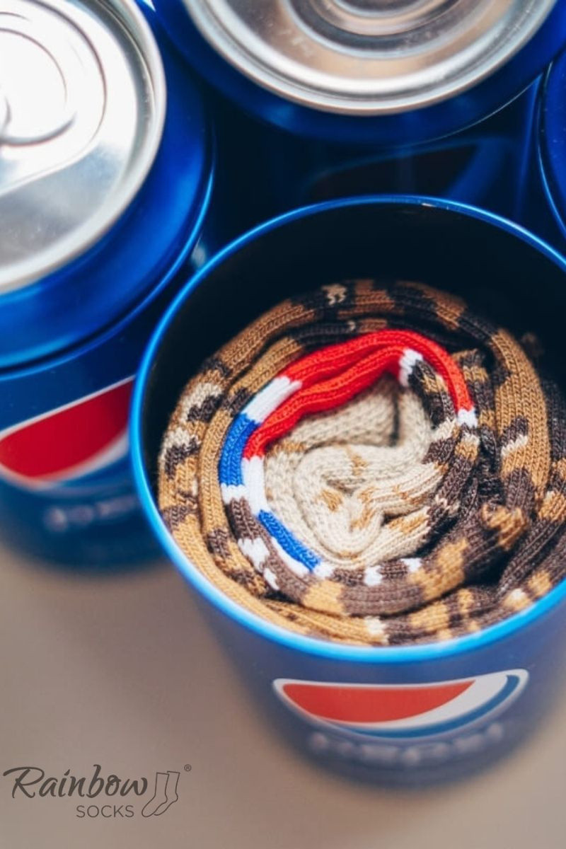 Kdo odolá šťavnatému burgeru v sadě s osvěžující Pepsi? Sock Food Truck je skvělou volbou pro každého milovníka rychlého občerstvení! Sada obsahuje chutný burger, který se skládá ze dvou párů barevných ponožek a plechovky Pepsi, která vás po otevření překvapí svým obsahem - další pár ponožek imitujících perlivý nápoj!