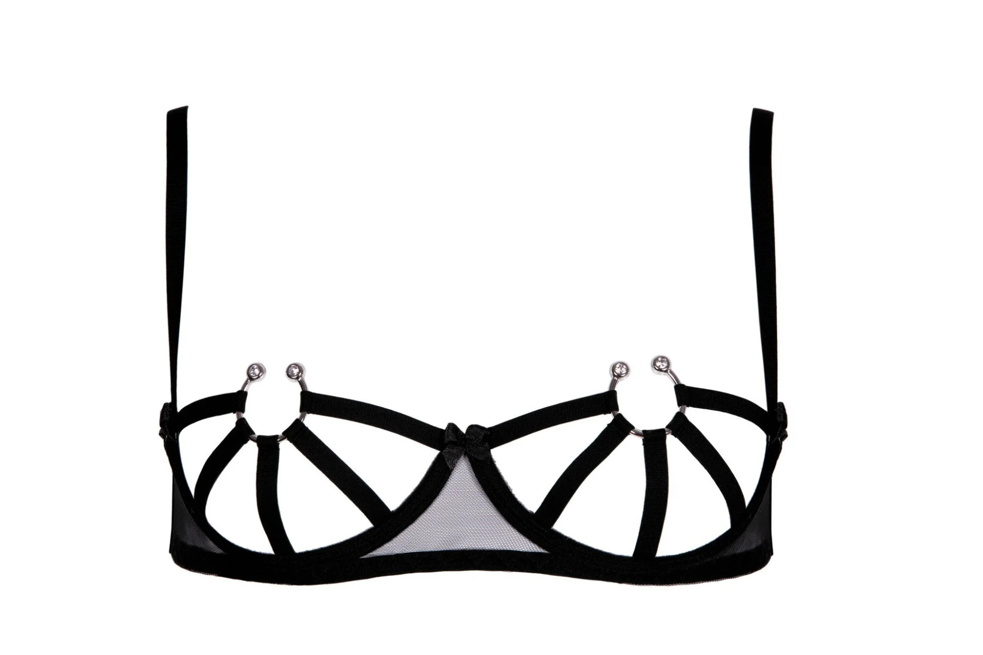Sexy trojdílný komplet, který dodá vašemu tělu mimořádně smyslný charakter. Je vyroben z tenkých ramínek, je elastický a zajímavý. Podprsenka má kostice, díky nimž dokonale zvýrazňuje prsa, svůdně je nadzvedává. Oblast bradavek zdobí bižuterní akcent zakončený krásně lesklými zirkony. Ramínka jsou nastavitelná. Podvazkový pás je dokonale přizpůsobený, perfektně zvýrazňuje pas. Tanga odhalují hýždě.