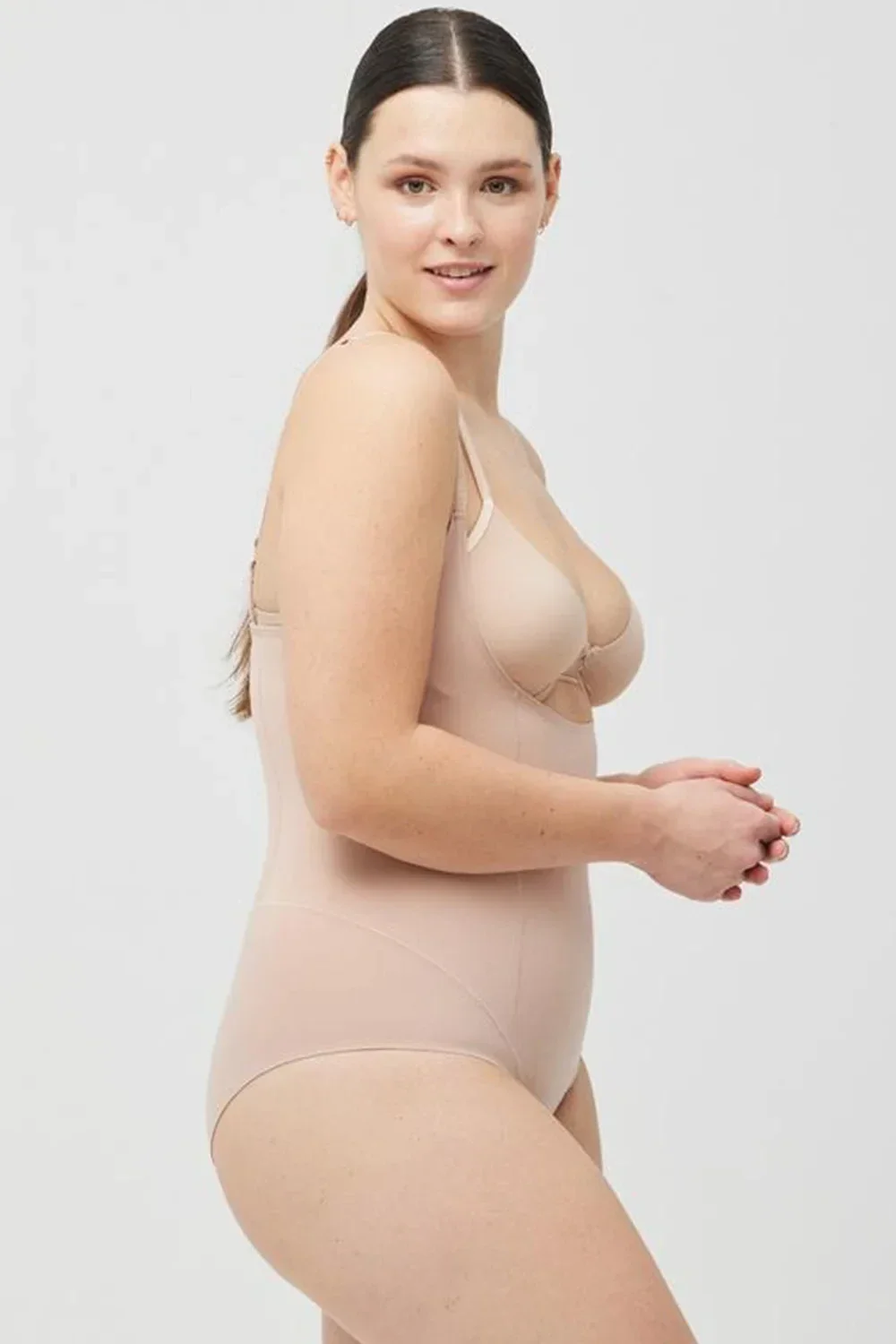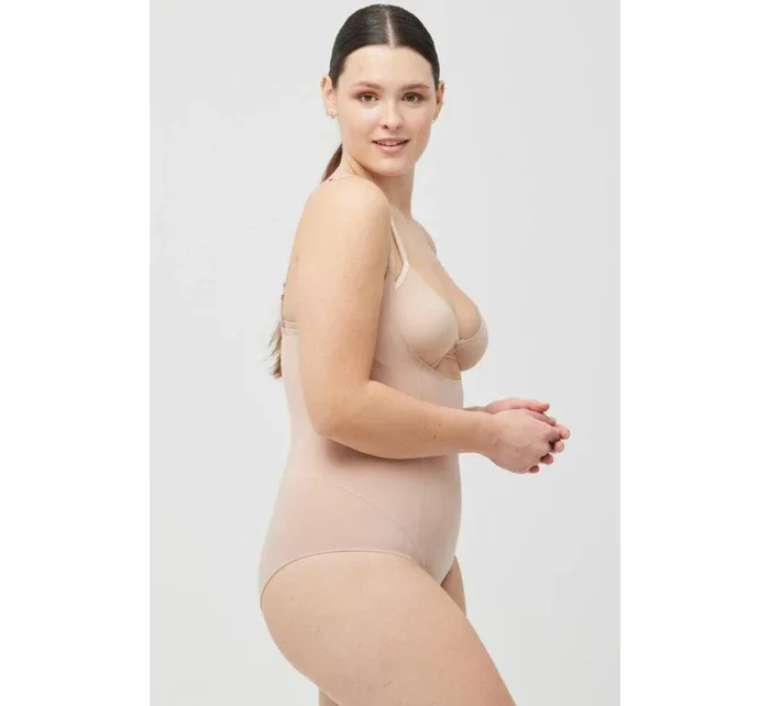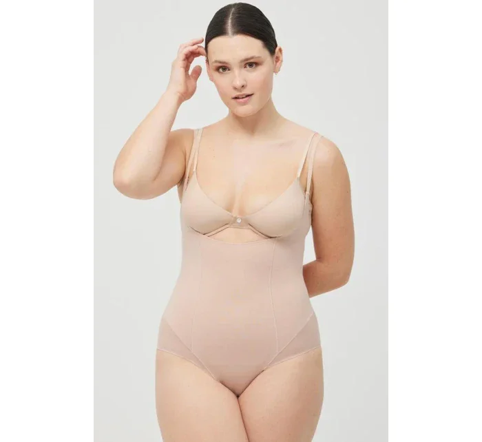 Body by Ysabel Mora, model 19336, se zapínáním v rozkroku, zapínání na háčky, kovové háčky na ramínka, 86% bavlna, 14% elastan, nastavitelná a odnímatelná ramínka, zeštíhlující prádlo, bezešvý lem, ženské.