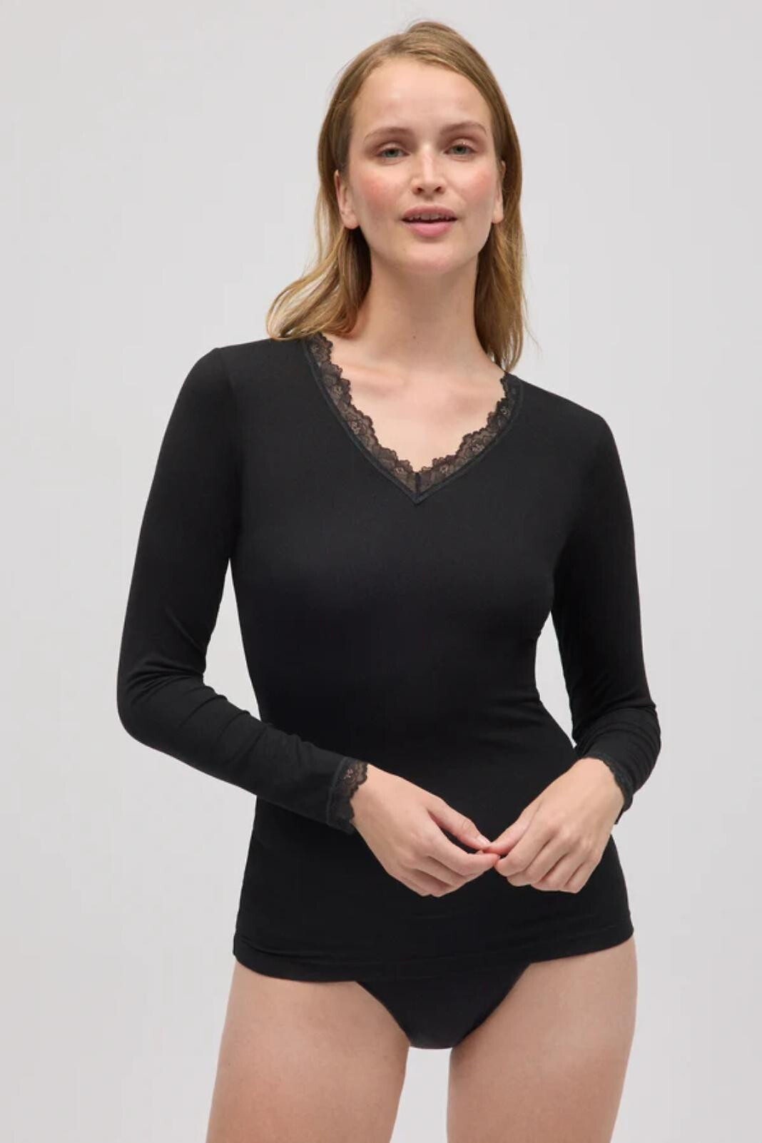 Složení: tričko 95% bambusová viskóza, 5% elastan; krajka 92% polyester, 8% elastan