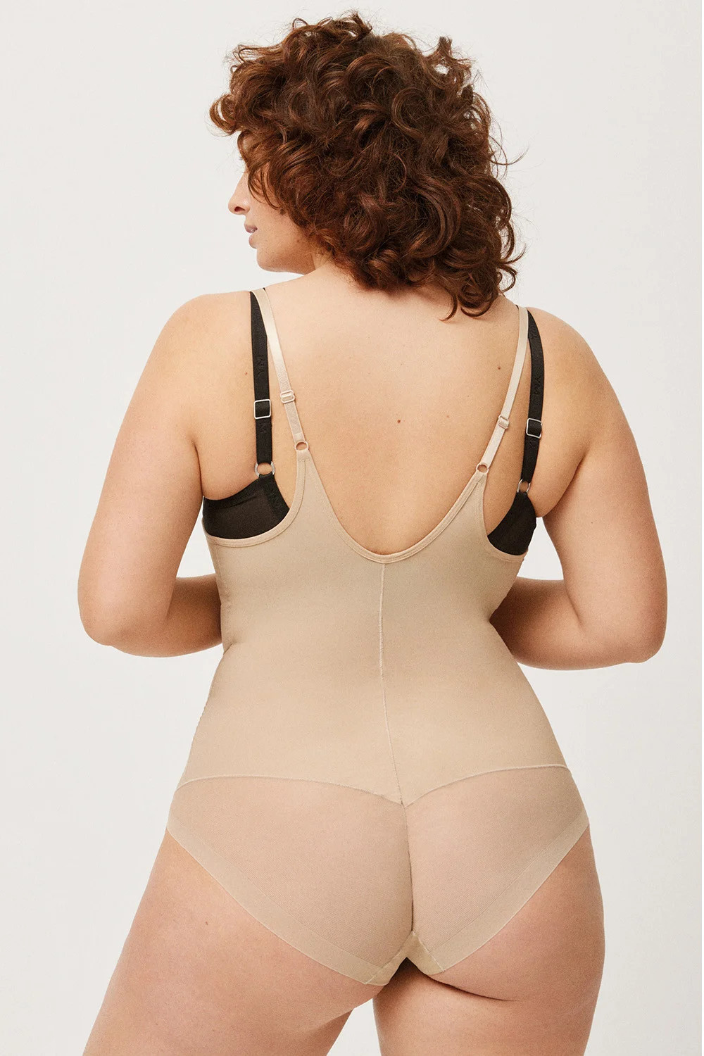 Body značky Ysabel Mora, model 19621, se zapínáním v rozkroku, zapínání na háčky, kovové háčky na ramínka, vyrobeno ze 73 % polyamidu, 27 % elastanu, nastavitelná ramínka, neodnímatelné, ženské, bezešvé lemy, korekční oděvy, zeštíhlující prádlo.