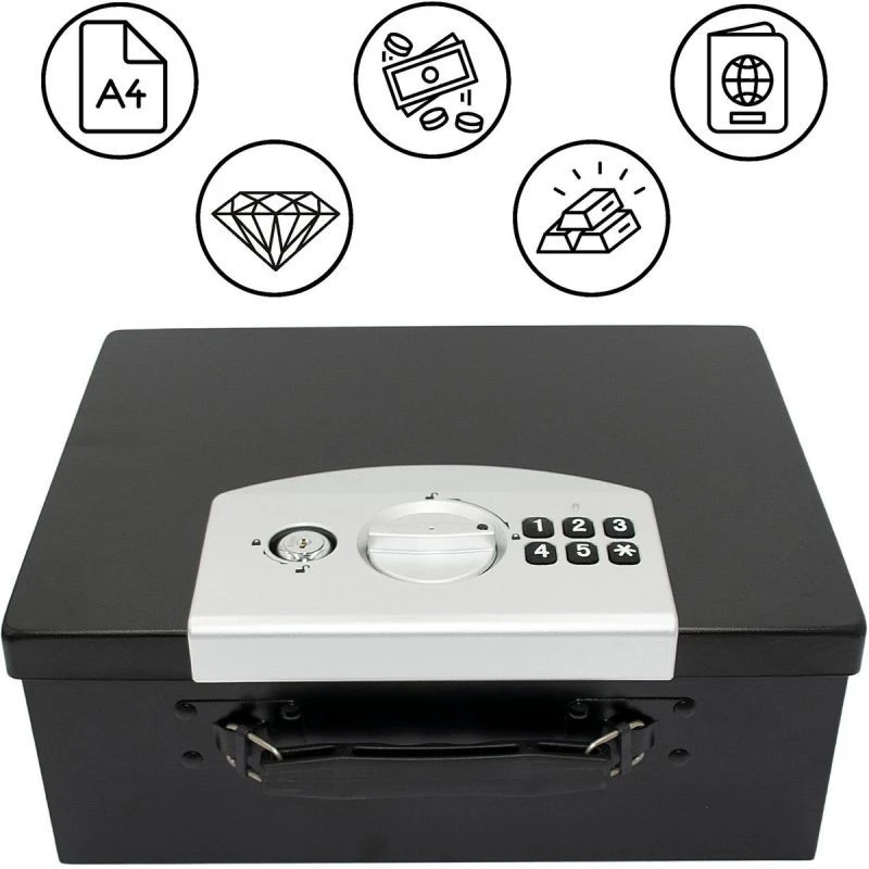 Dzięki solidnej budowie i intuicyjnej obsłudze, sejf świetnie sprawdzi się w domu, biurze, hotelu czy sklepie. Jest doskonały do przechowywania gotówki, ważnych dokumentów, kluczy, biżuterii, nośników danych oraz innych wartościowych przedmiotów, chroniąc je przed dostępem osób niepowołanych.