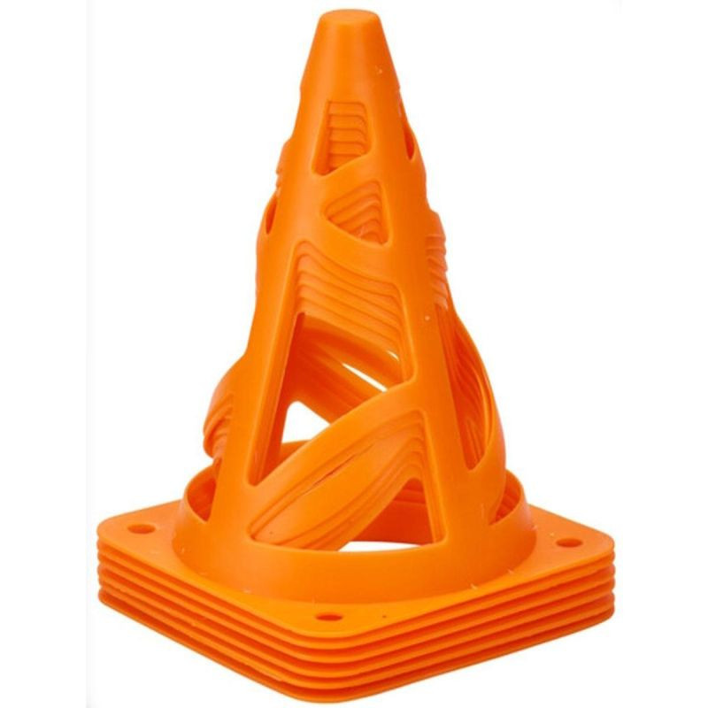 Zestaw 6 lekkich, ażurowych pachołków to niezastąpione narzędzie do każdego rodzaju ćwiczeń: od szybkiego sprintu, przez zwinność, po zabawę z dziećmi.