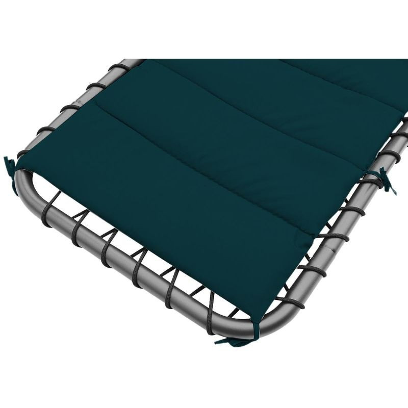 - Materiały: stal malowana proszkowo, pokrycie materaca - poliester 180 g/m2, poduszka - poliester 160 g z wypełnieniem 5 cm, textilene 2x1