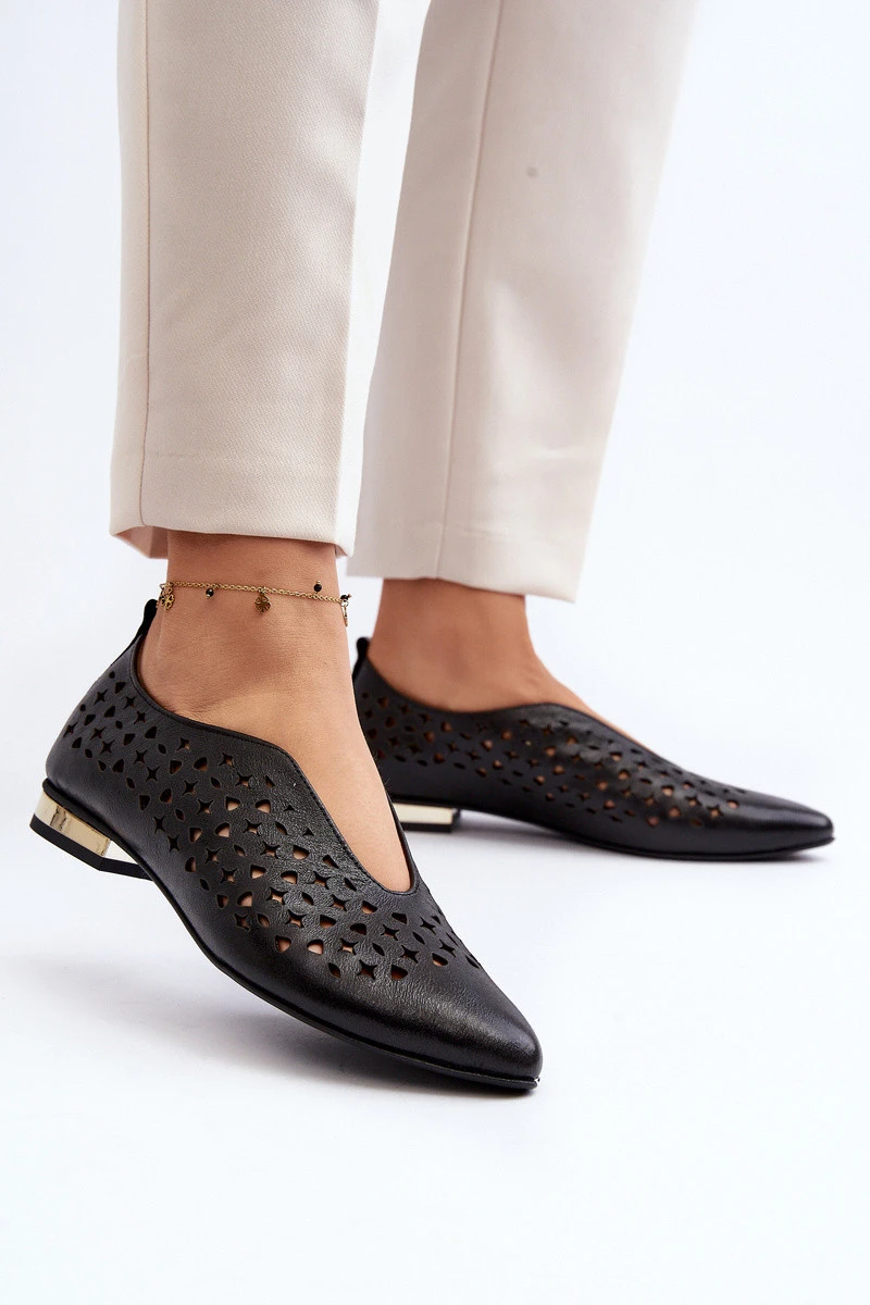 Dámské baleríny vyrobené z přírodní kůže. Špičky v mandlovém tvaru opticky prodlouží nohy. Kožená vložka zajistí pohodlí během nošení. Model s prodyšnou svrškem. Ideální pro mnoho jarních a letních stylizací! Určitě si je musíte pořídit! Při výběru velikosti se řiďte tabulkou velikostí.