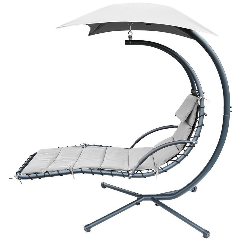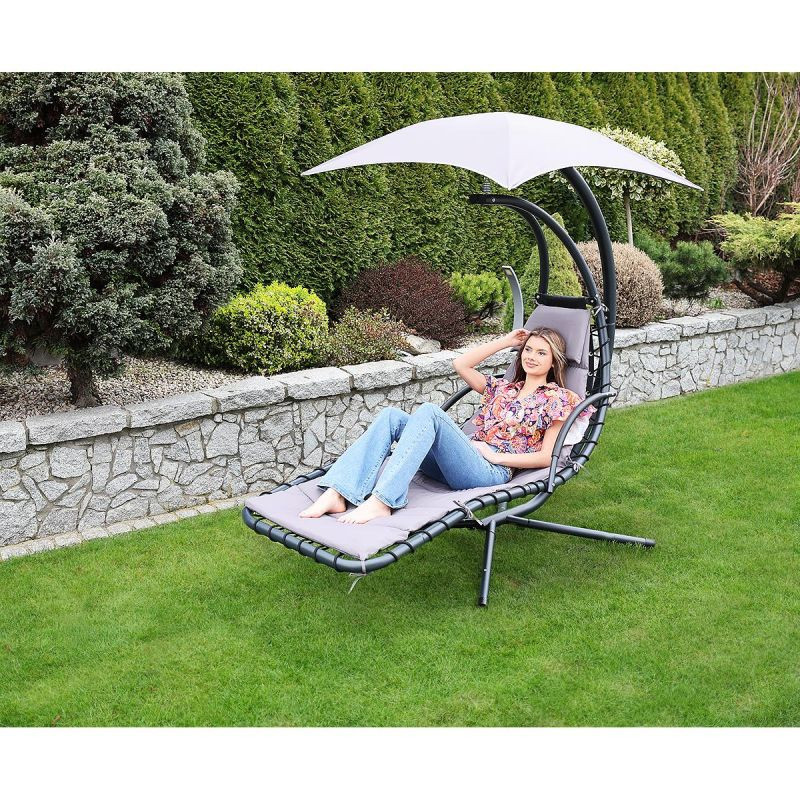 Nie zwlekaj z zakupem, Z HUŚTAWKĄ FOTELEM WISZĄCYM BUJANYM Z PARASOLEM LIZBONA SZARY relaks na świeżym powietrzu to czysta przyjemność!