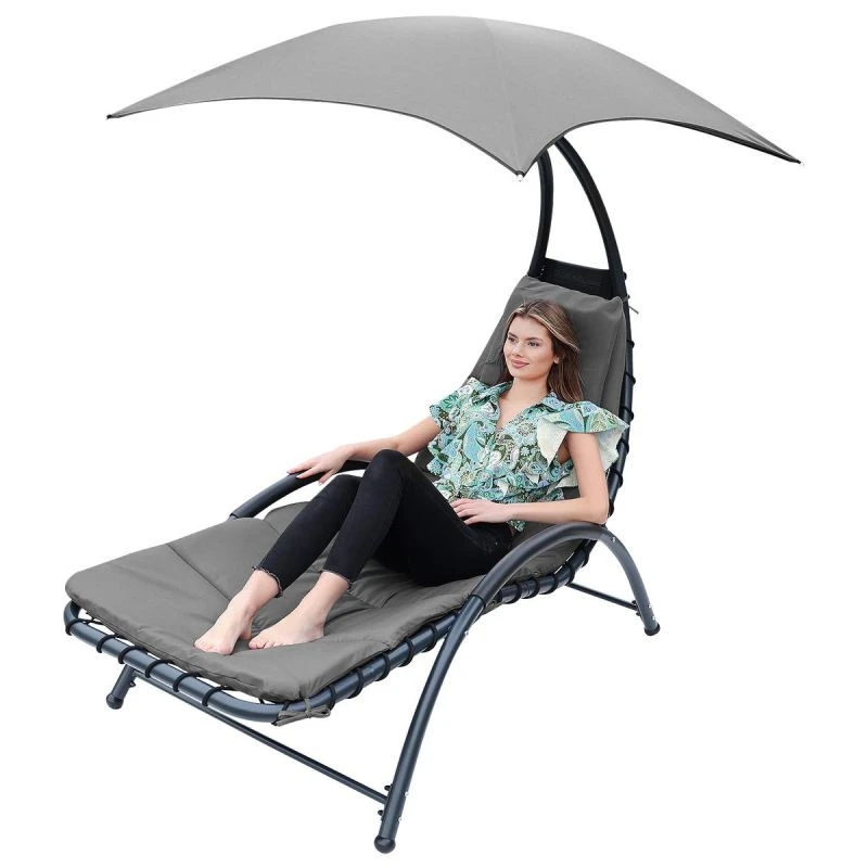 Chcesz podarować sobie odrobinę luksusu? Odprężyć ciało i rozpieścić zmysły. LEŻAK FOTEL Z PARASOLEM BERGAMO 200x125x180CM SZARY stworzy dla Ciebie wymarzoną strefę relaksu w ogrodzie, na tarasie czy balkonie!