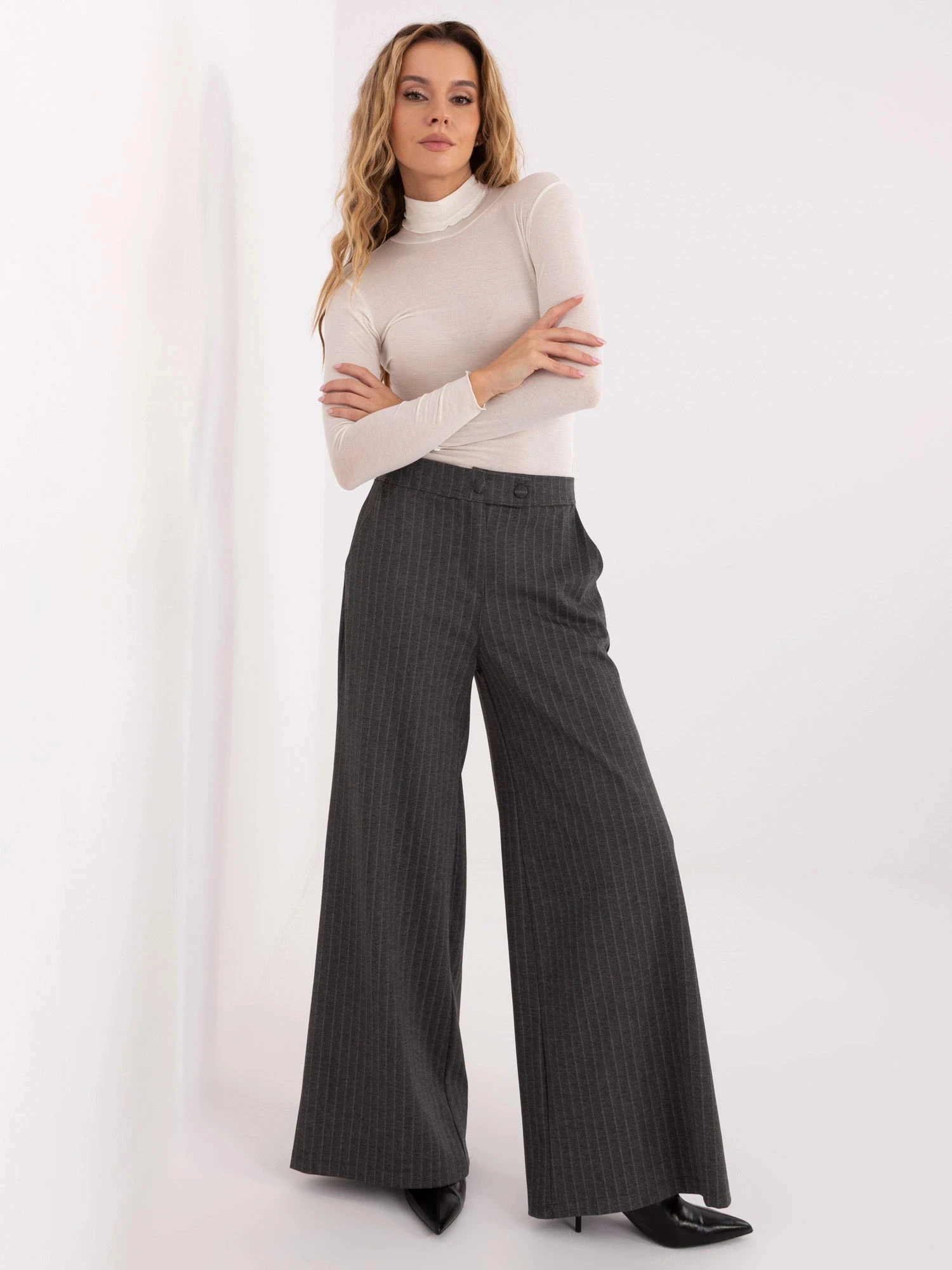 Skład materiału: 65% wiskoza, 20% kaszmir, 9% nylon, 6% elastan