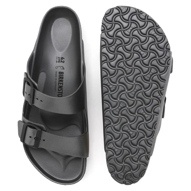 Sandály BIRKENSTOCK Arizona jsou opravdovou klasikou. Tento model korkových sandálů je vyroben z pěnového materiálu EVA. Vysoce kvalitní plast EVA je bez zápachu a testován na možné nečistoty a kombinuje různé vlastnosti: plast je velmi lehký a pružný, odolný proti vodě a šetrný k pokožce a nabízí typické pohodlí BIRKENSTOCK.