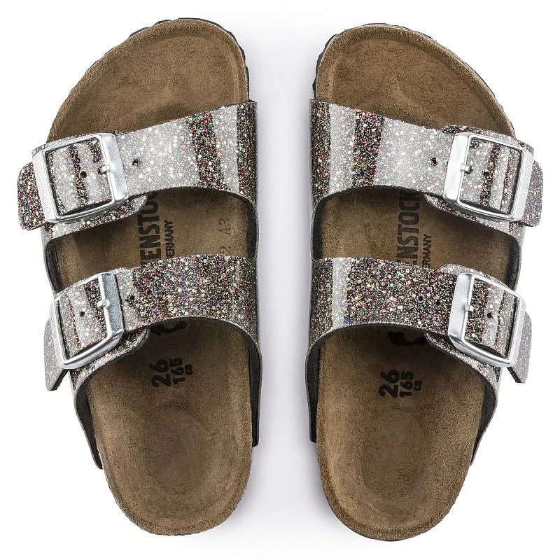 Žabky se dvěma pásky udrží dětská chodidla v perfektní poloze - i při těch nejbláznivějších hrách! V této verzi nabízí model "Cosmic Sparkle" výrazný efekt třpytivých částeček, díky němuž boty vynikají jedinečným třpytem a mimořádně elegantním vzhledem. Svrchní materiál je vyroben z odolného syntetického materiálu Birko-Flor®, který je šetrný k pokožce.