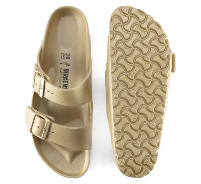 - Vysoce kvalitní plast EVA je bez zápachu a je testován na možné znečištění, a navíc v sobě spojuje různé vlastnosti: plast je velmi lehký a pružný, odolný proti vodě a šetrný k pokožce a nabízí typický komfort nošení značky Birkenstock.