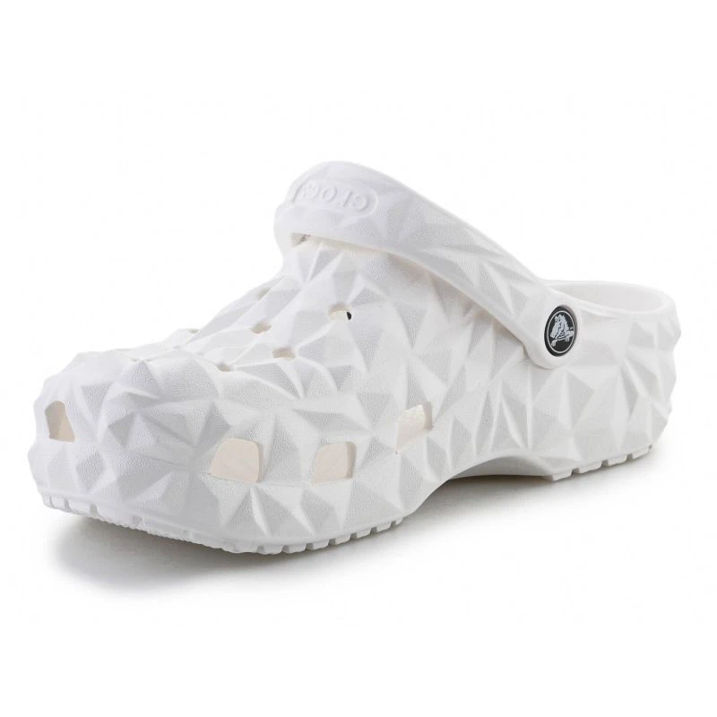- Crocs Classic Geometric Clog 209563-100 v bílé barvě je moderní verzí ikonických dřeváků Crocs s geometrickou strukturou.