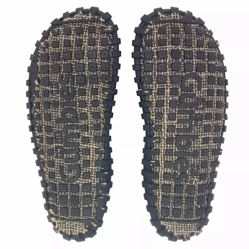 - JUTOVÁ VLÁKNA - Do formy našich recyklovaných gumových podrážek se přidává vrstva jutových vláken. Tento přírodní materiál pomáhá gumě vytvářet pružné spojení a zároveň zvyšuje její pevnost a odolnost.
