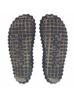 - JUTOVÁ VLÁKNA - Do formy našich podrážek z recyklované pryže se přidává vrstva jutových vláken. Tento přírodní materiál pomáhá pryži vytvářet pružné spojení a zároveň zvyšuje její pevnost a odolnost.