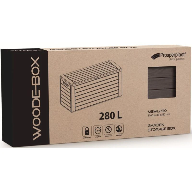Hledáte další úložný prostor na terase, balkoně nebo na zahradě? Zahradní úložný box WOODEBOX o objemu 280 l splní svou úlohu dokonale a zapadne do jakéhokoli uspořádání.