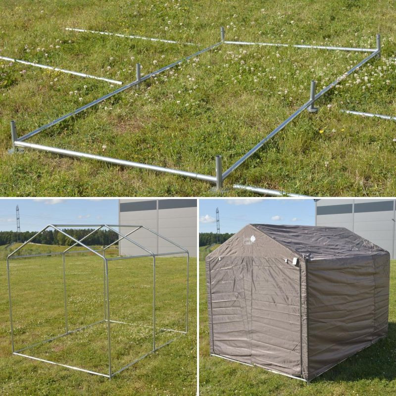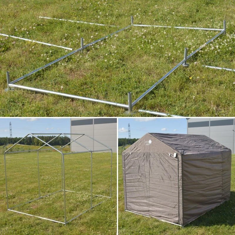 Pavilon je vybaven pozinkovaným ocelovým rámem, který je odolný vůči korozi, mechanickému poškození a povětrnostním podmínkám, díky čemuž je konstrukce stabilní a odolná i při intenzivním používání a vystavení dešti, vlhkosti nebo UV záření. Díky pozinkované oceli je pavilon robustnější než standardní modely, což zaručuje dlouhou životnost a bezpečnost uložených předmětů.