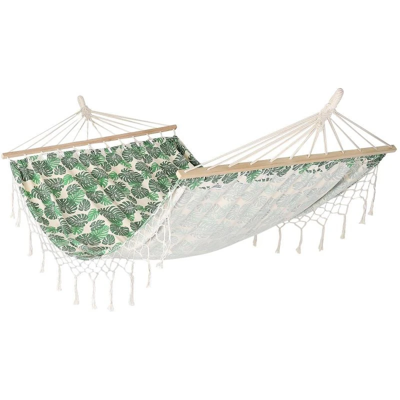 Náš zahradní houpací lehátko 200X150 cm pro 2 osoby s kruhem a svěží miamskou přírodou JUNGLE je ideální volbou pro líné letní odpoledne na zahradě.