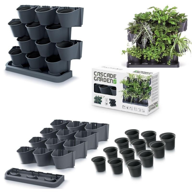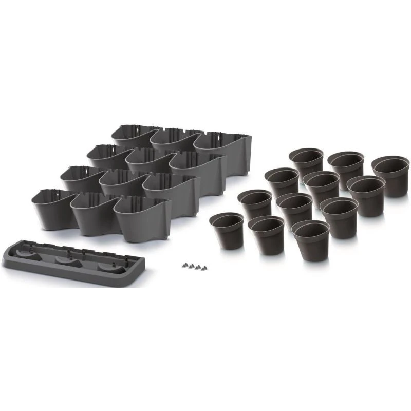 - Sada se skládá z 21 dílů: 4 modulů se 3 otvory pro květináče, 12 květináčů, 1 odkapávací desky, 8 spojů s dalšími moduly