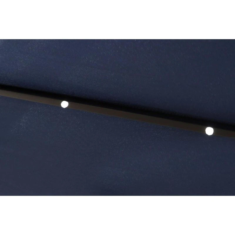 Díky integrovanému LED osvětlení lze slunečník používat i ve večerních hodinách. Máte tak možnost užívat si zahradu i po setmění a vytvořit si příjemnou romantickou atmosféru. LED diody jsou napájeny solárním panelem na horní straně slunečníku, ale mějte na paměti, že světla budou správně fungovat pouze při nabití baterie za slunečného dne.