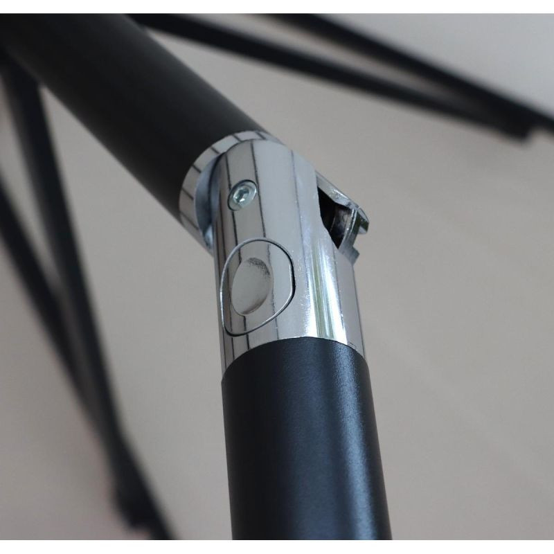 Kromě kliky, kterou stříšku otevíráte, má slunečník systém nastavení úhlu sklonu. Toto nastavení vám umožní upravit plochu stínu během dne a umožní vám udržet příjemnou teplotu i v horkých dnech.