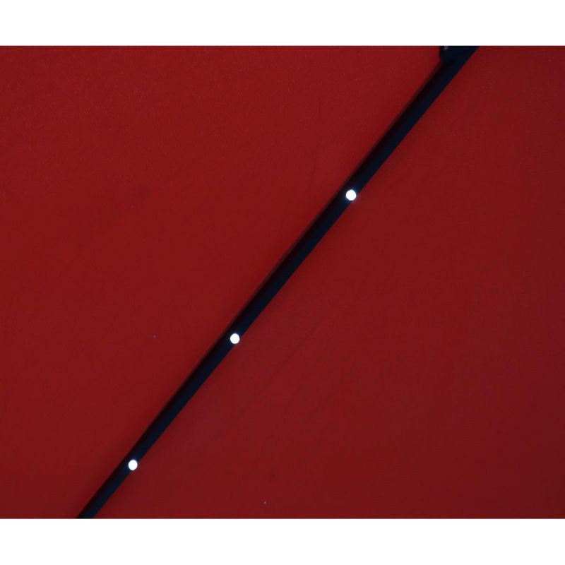 - Počet LED diod: 32 (4 na každé rameno) napájených solárním panelem (je součástí deštníku)