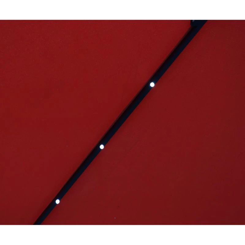Díky integrovanému LED osvětlení lze slunečník používat i ve večerních hodinách. Máte tak možnost užívat si zahradu i po setmění a vytvořit si příjemnou romantickou atmosféru. LED diody jsou napájeny solárním panelem na horní straně slunečníku, ale mějte na paměti, že světla budou správně fungovat pouze tehdy, když je baterie nabitá za slunečného dne.