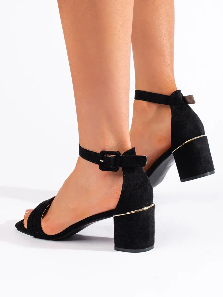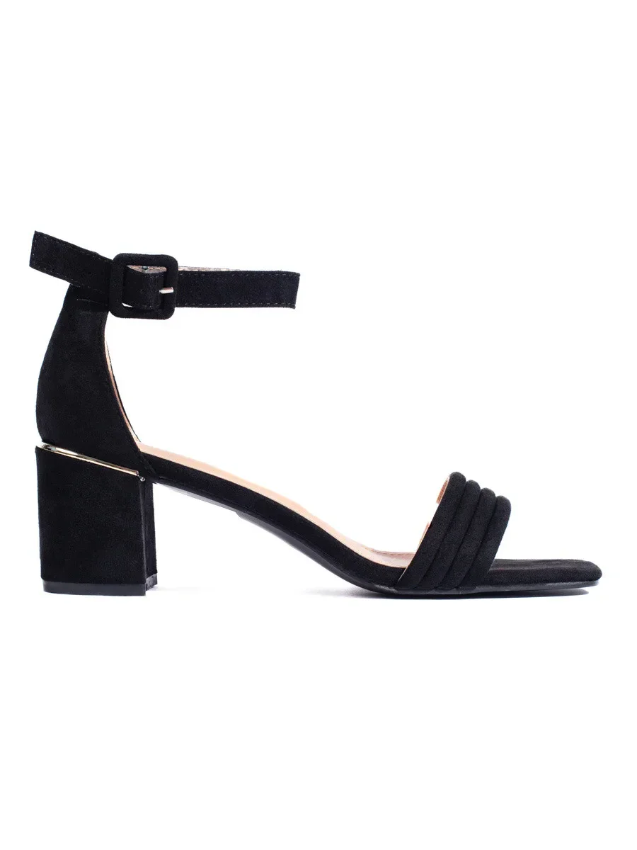 Přidání recenze k Zajímavé černé dámské sandály na širokém podpatku