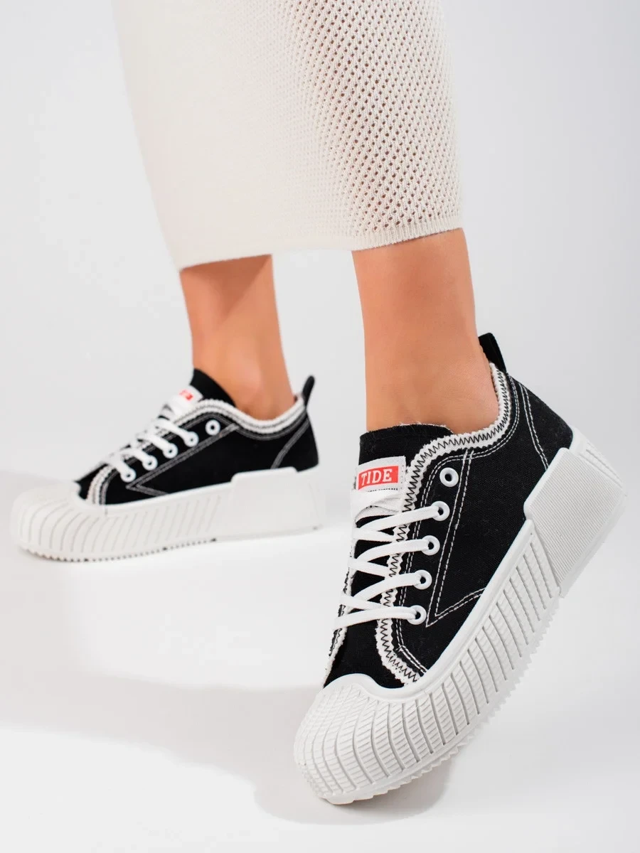Zajímavé dámské černé tenisky bez podpatku