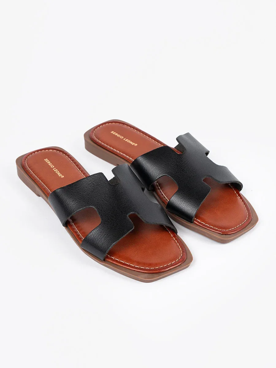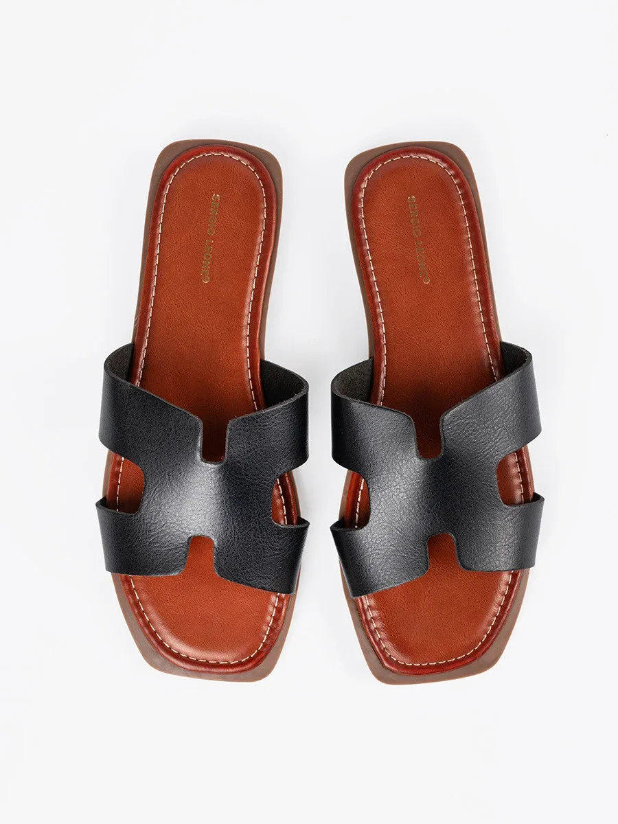 Zajímavé dámské nazouváky černé na plochém podpatku