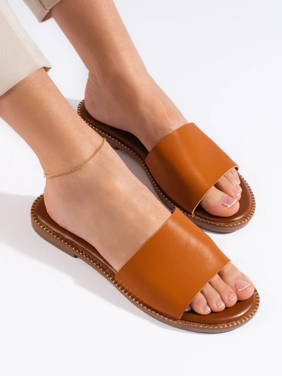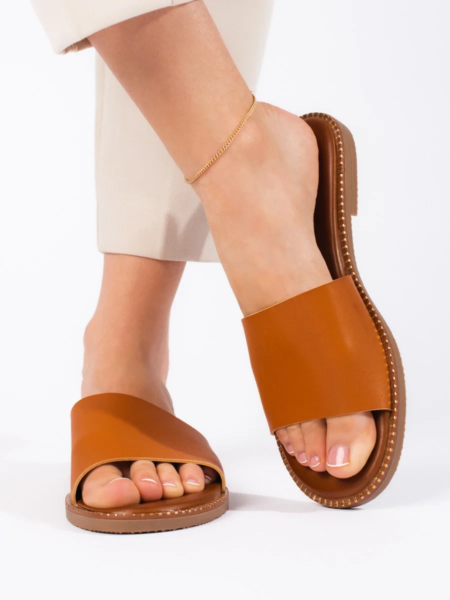 Zajímavé hnědé nazouváky dámské bez podpatku