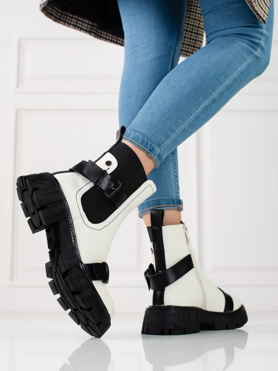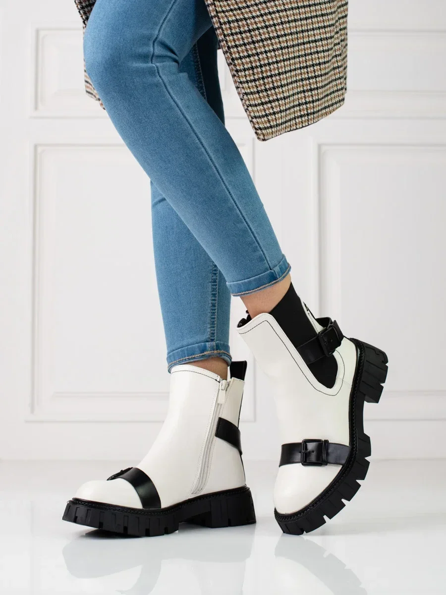 Zajímavé kotníčkové boty bílé dámské na plochém podpatku
