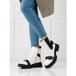 Přidání recenze k Zajímavé kotníčkové boty bílé dámské na plochém podpatku