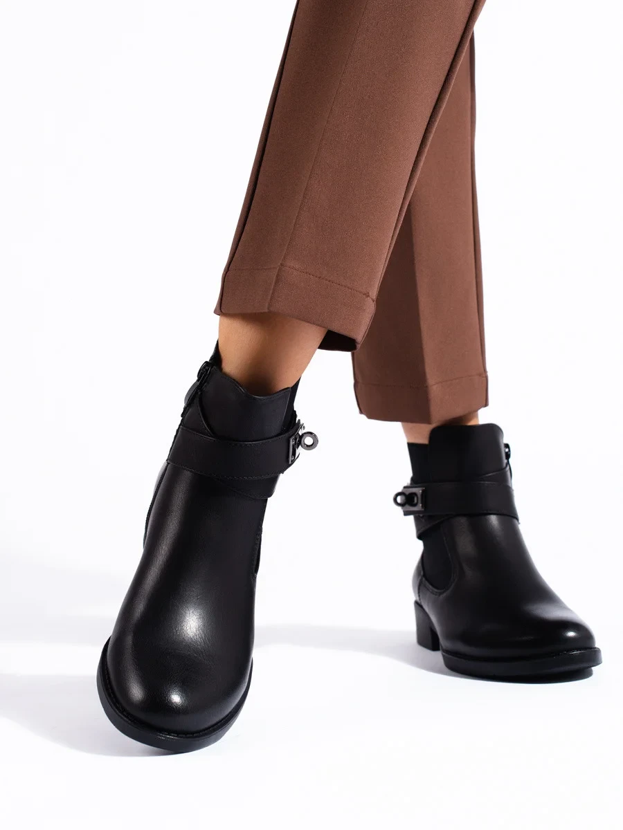 Zajímavé kotníčkové boty černé dámské na plochém podpatku