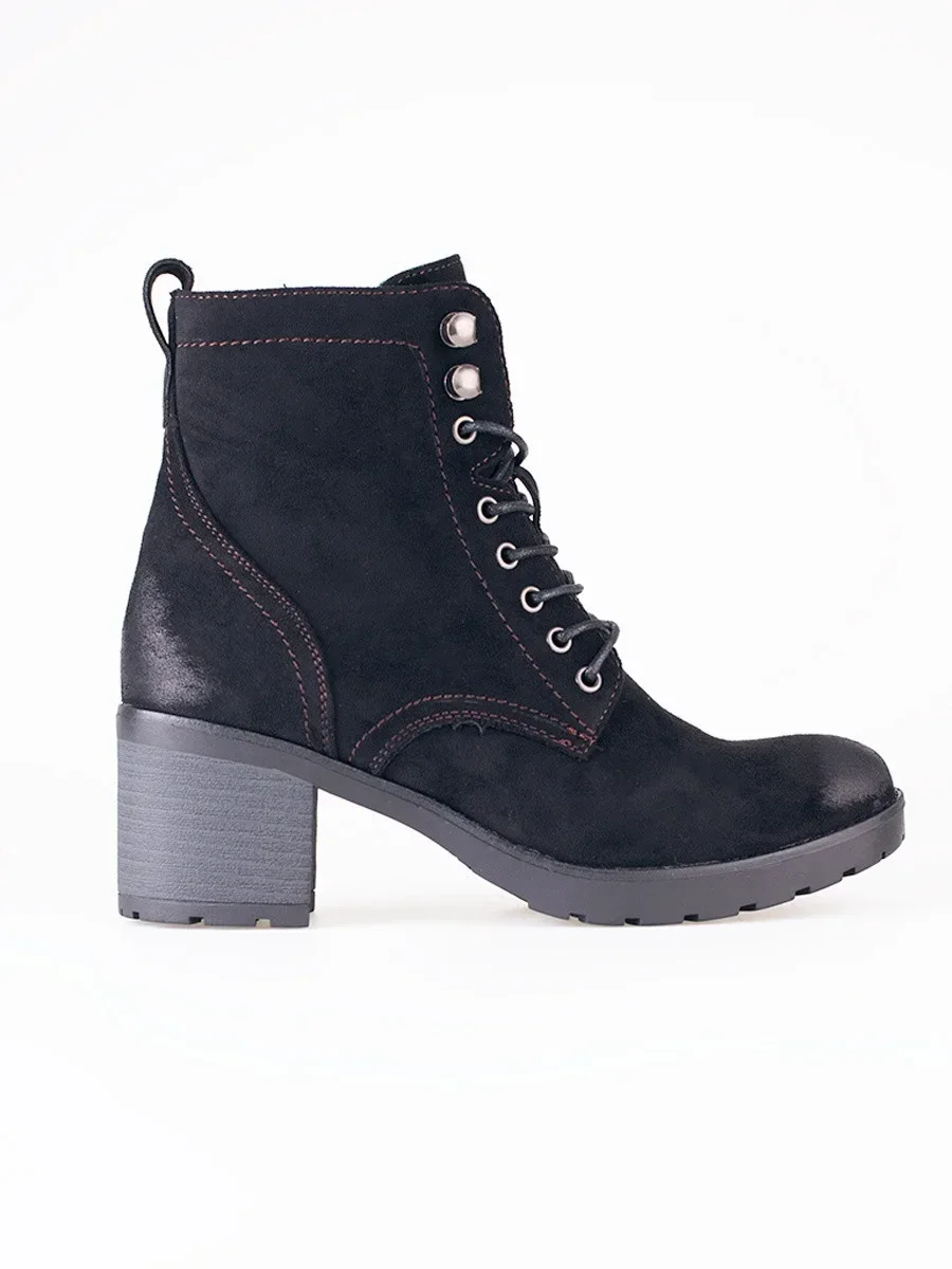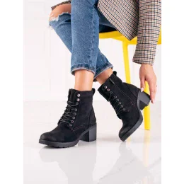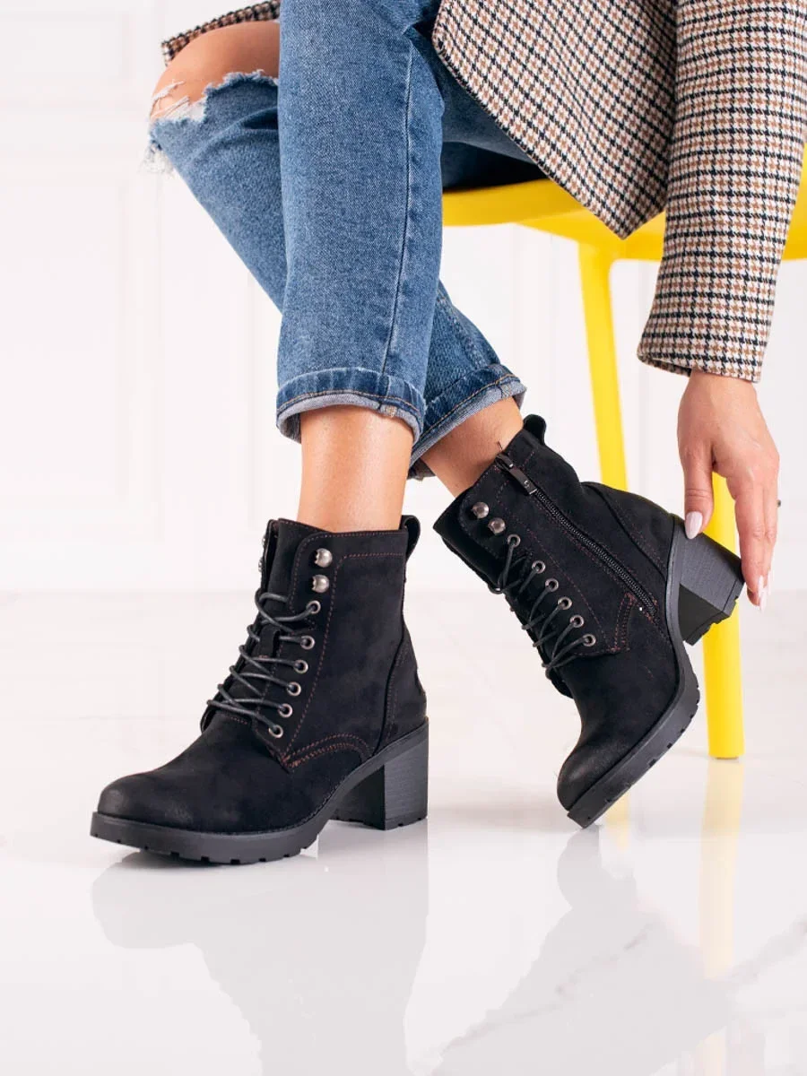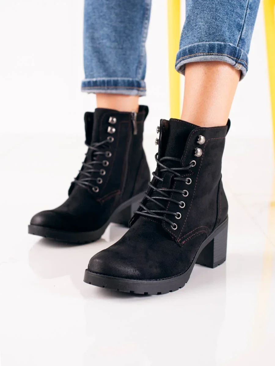 Zajímavé kotníčkové boty černé dámské na širokém podpatku