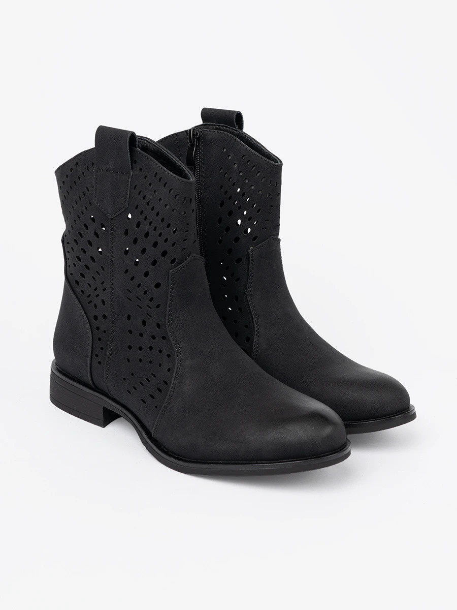 Zajímavé kotníčkové boty dámské černé bez podpatku