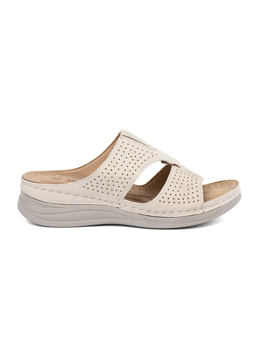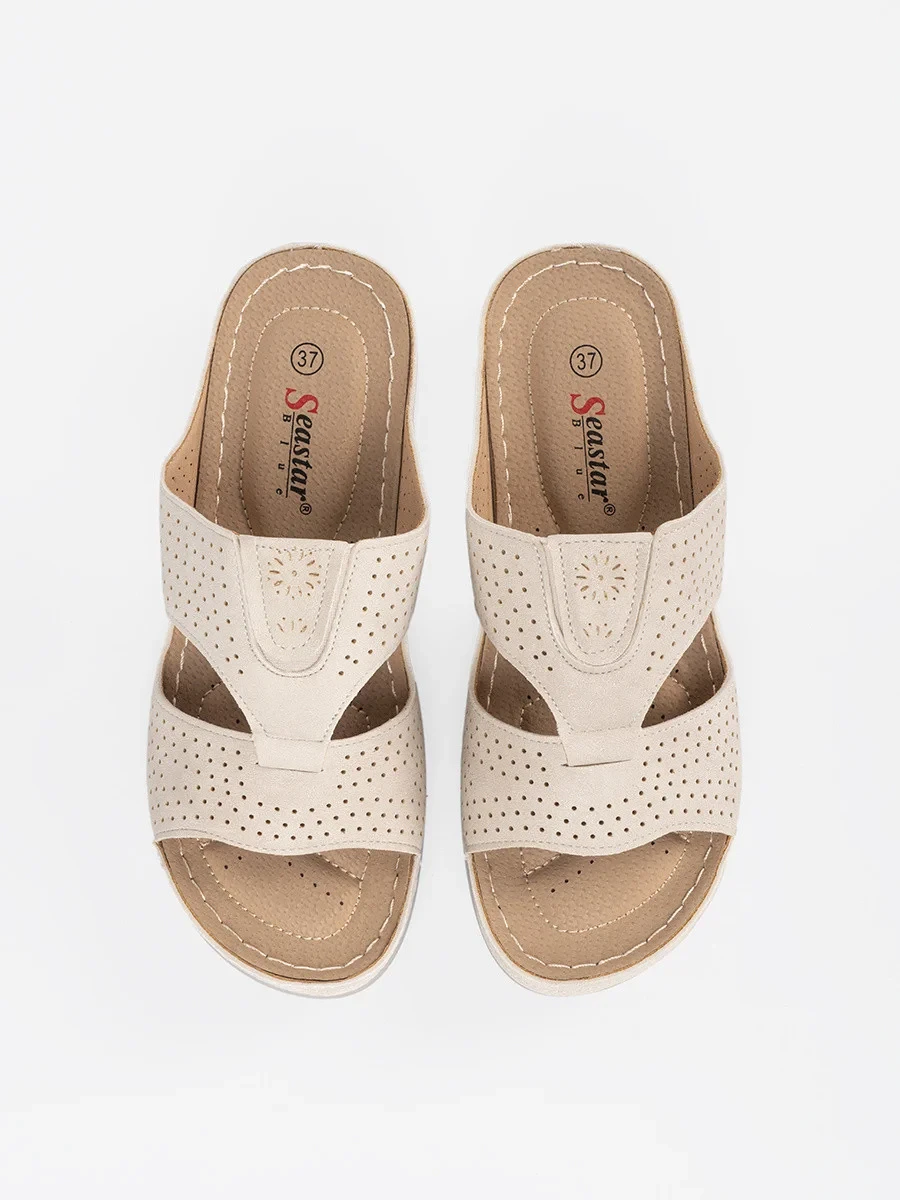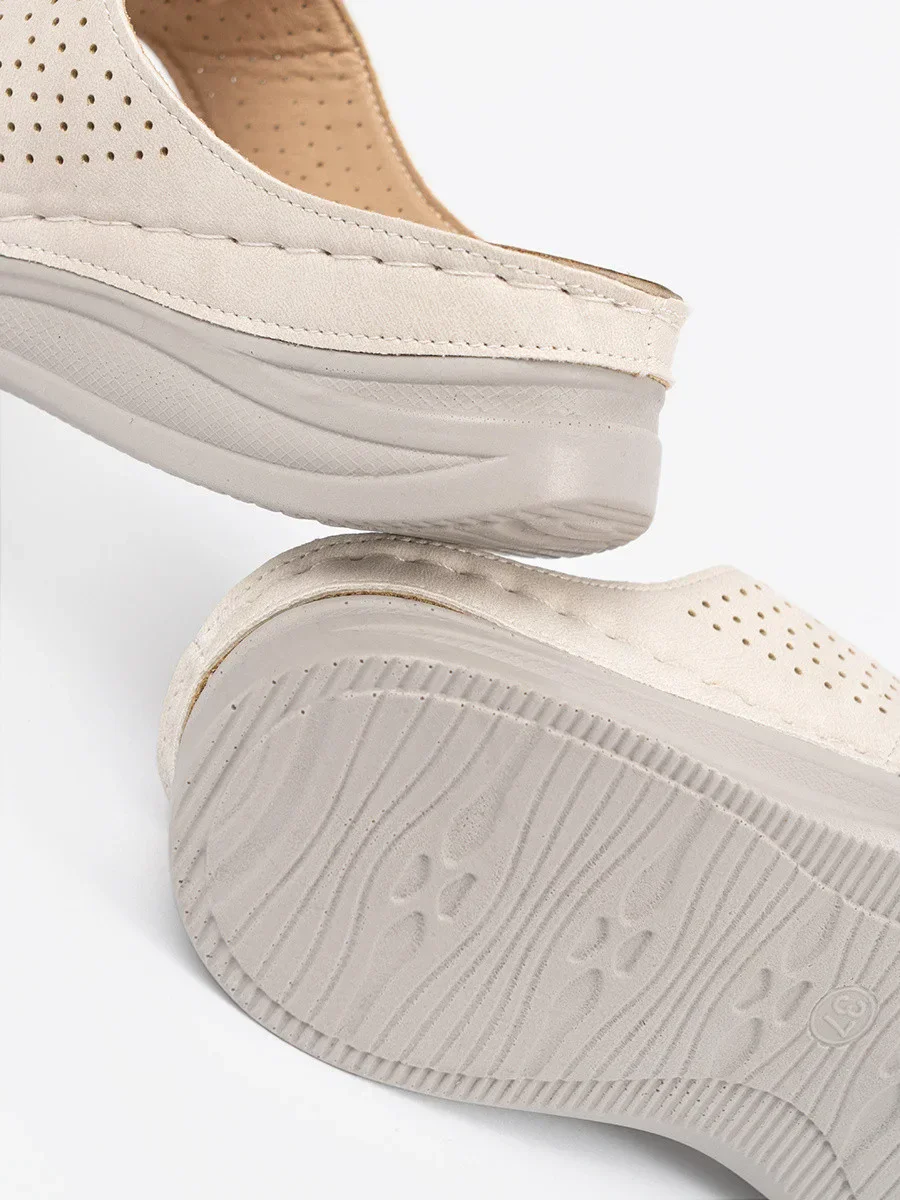 Zajímavé nazouváky dámské Jasnobeżowy na plochém podpatku