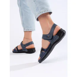 Přidání recenze k Zajímavé sandály dámské modré na plochém podpatku