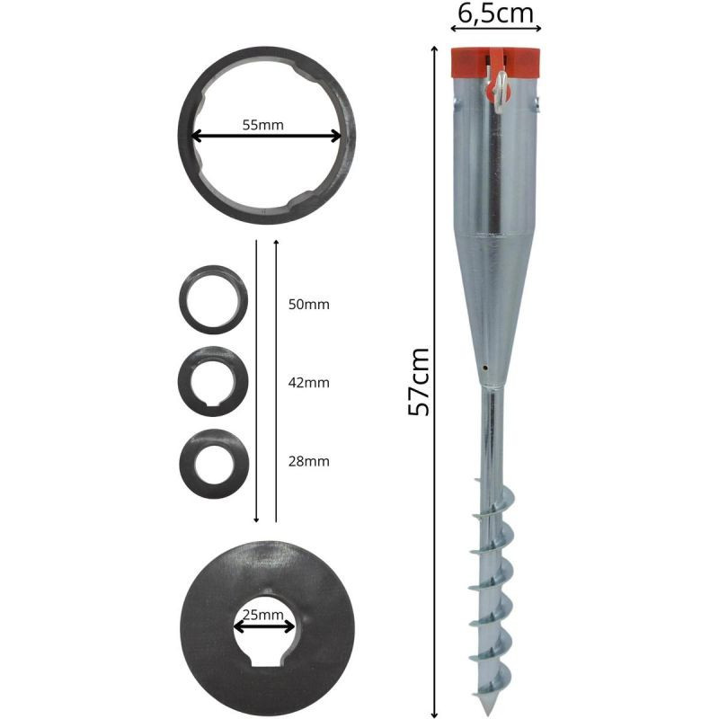 Spirálový konec umožňuje zašroubovat základnu přímo do trávníku, půdy nebo písku. Je to rychlé a pohodlné, nepotřebujete žádné další nářadí.