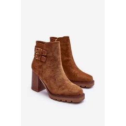 Zamszové Botky Na Podpatku Hnědé model 21632198 - Boto