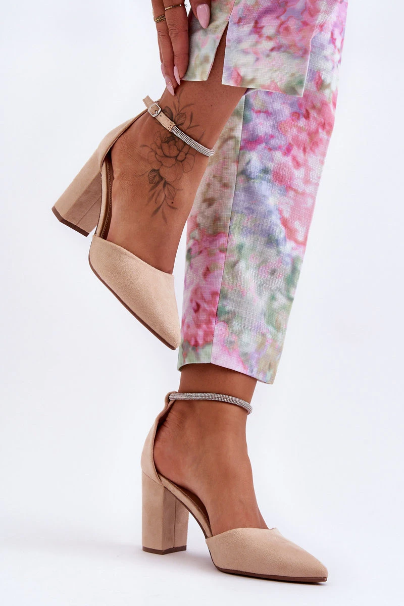 Zamszové Pumpy se Cyrkoniami Béžové Diamond