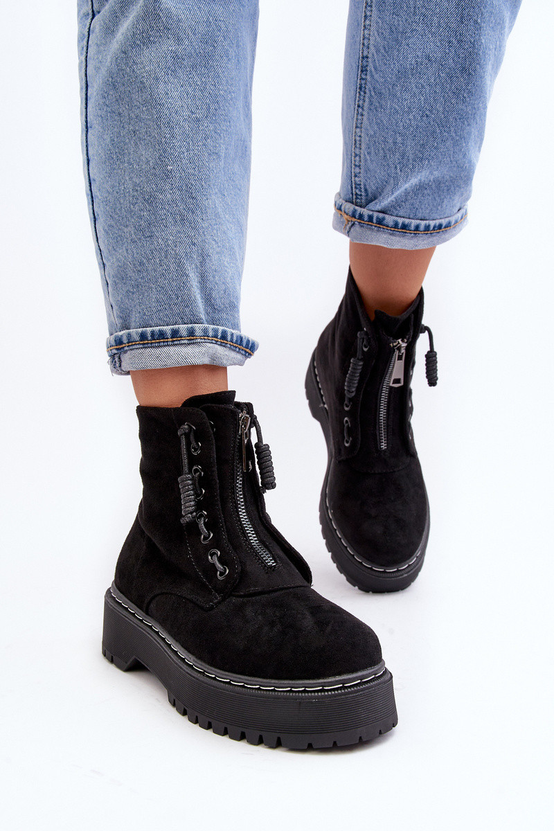 Zamszové Trapery Botky Dámské Na Tlusté Podešví Se Suwákem Černé Edivame