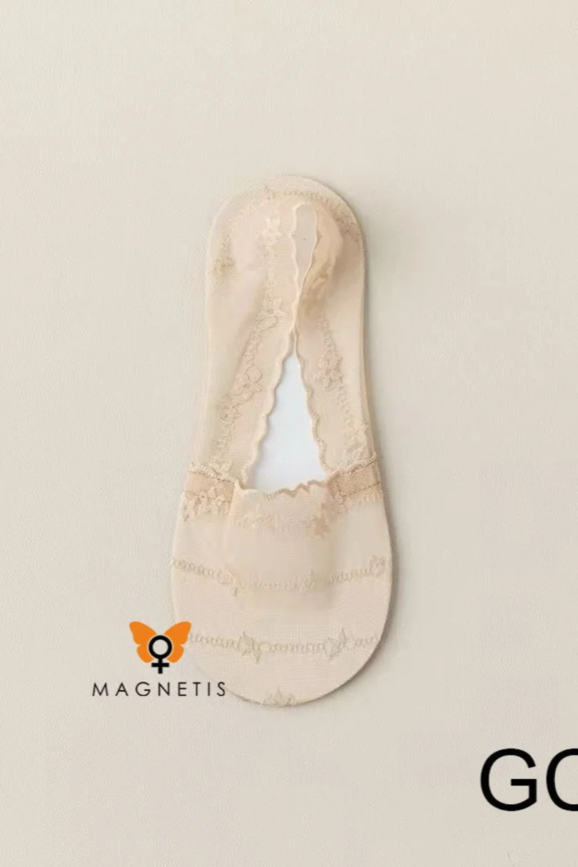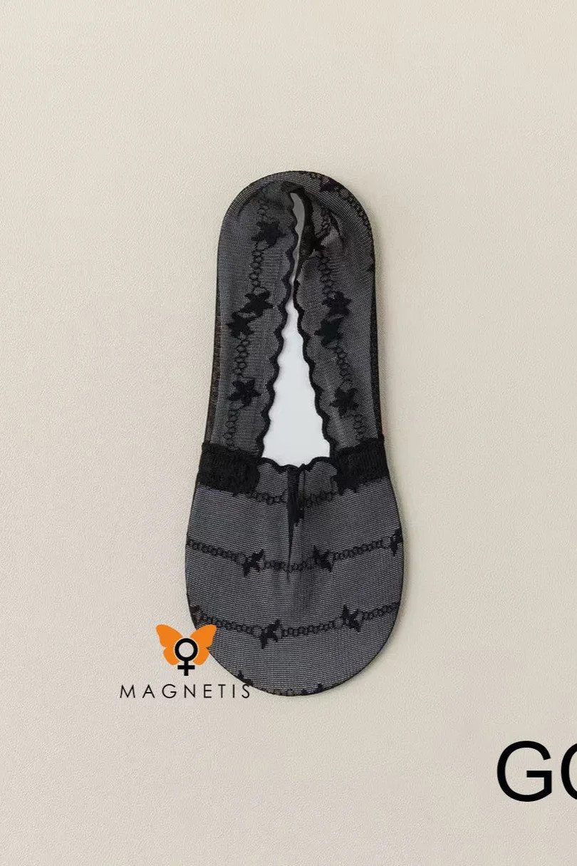 Ponožky Magnetis GC241133 jsou elegantní ponožky z jemné průhledné krajky, která decentně zdůrazňuje ženskost. jejich lehká a vzdušná konstrukce zajišťuje celodenní pohodlí, zatímco pružná tkanina se dokonale přizpůsobí chodidlu. díky jemnému vzoru a elegantnímu provedení jsou dokonalým doplňkem k balerínám, mokasínámóm a elegantní obuvi.