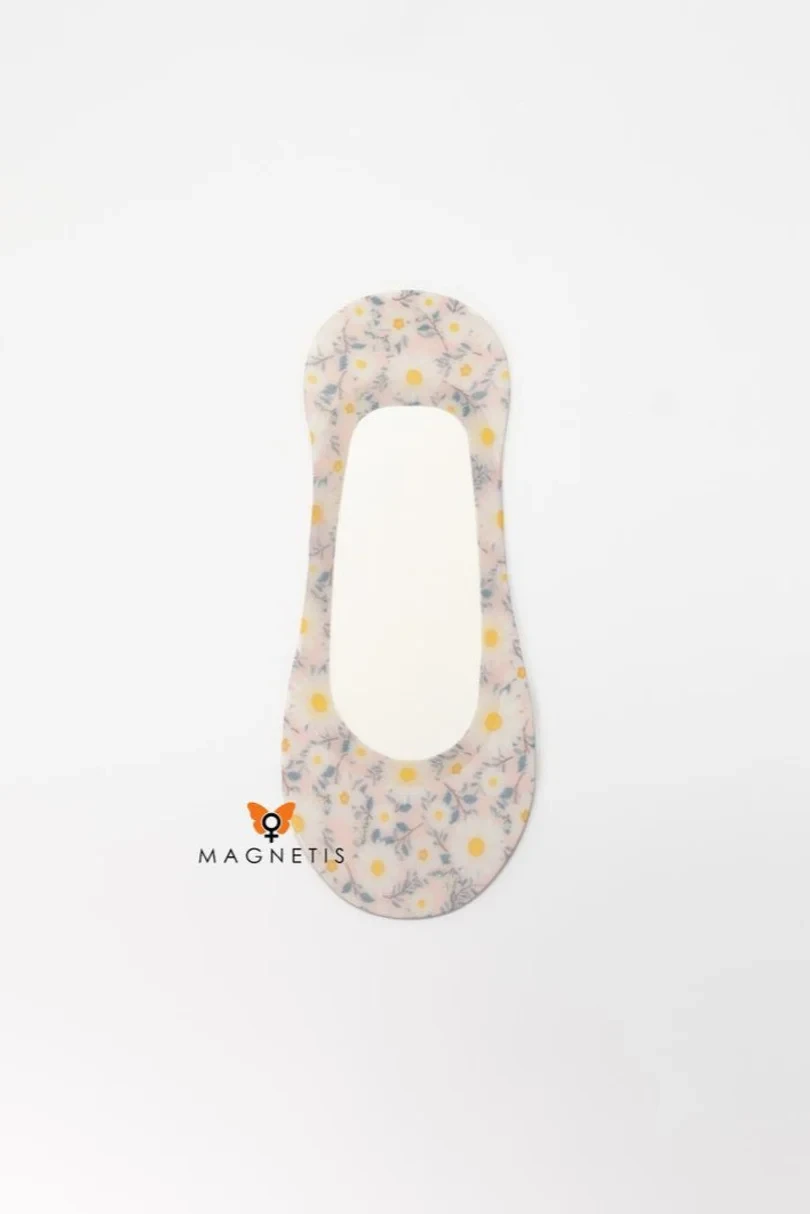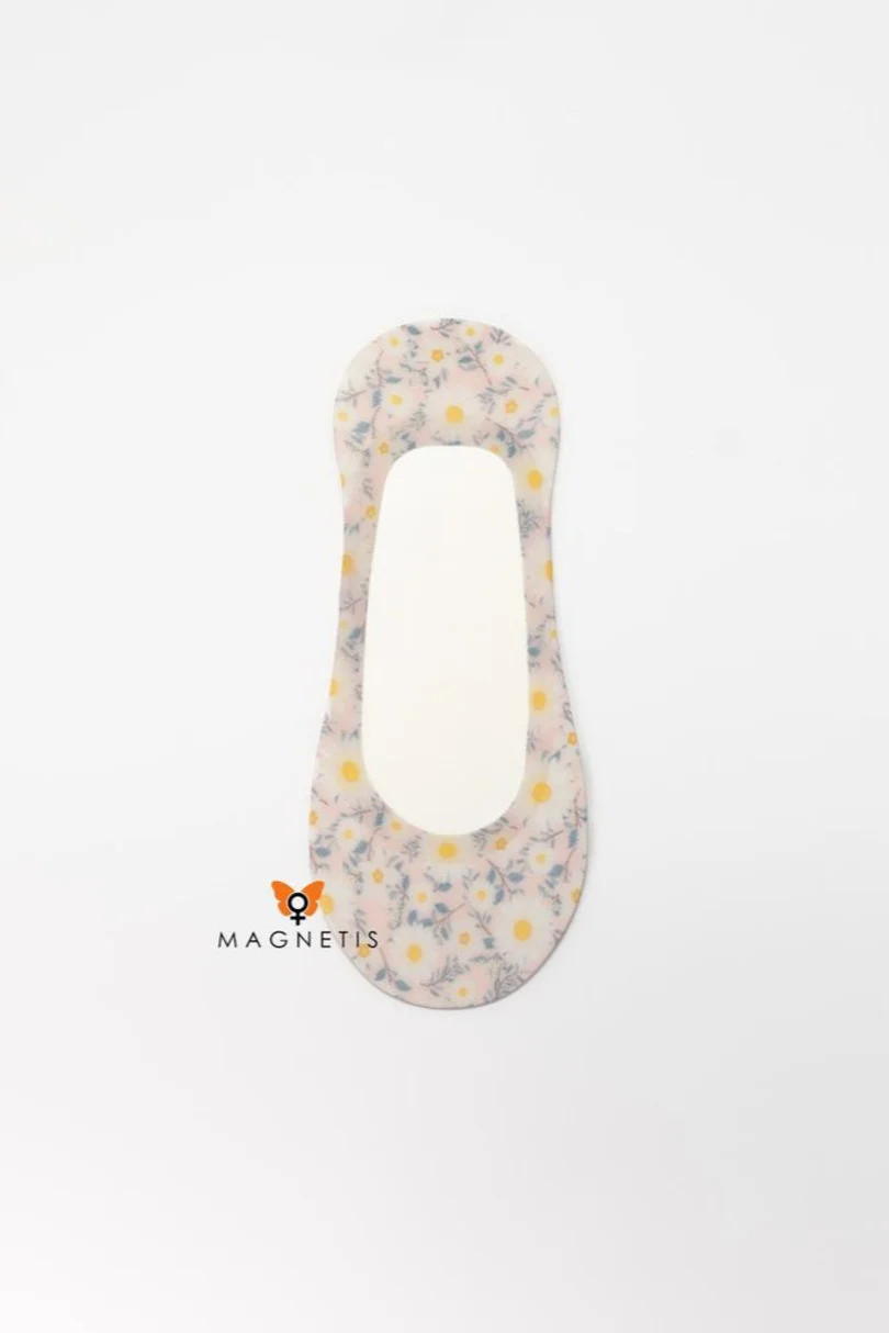 Stélky MAGNETIS DY241111-STOCROTKI jsou ideální volbou pro ženy, které ocení jemné, romantické vzory. Jemný motiv kopretiny na světlém podkladu dodá lehkost a šarm každému oblečení. Díky kombinaci polyamidu (87 %) a elastanu (13 %) jsou stélky mimořádně měkké, pružné a prodyšné. Speciální protiskluzový proužek na patě zabraňuje uklouznutí a zajišťuje celodenní pohodlí. Ideální pro baleríny, mokasínyóy a další nízkou obuv.