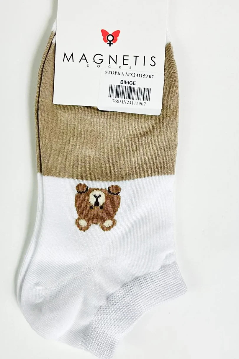 Obuv MAGNETIS MX241159 07 je okouzlujícím doplňkem vašeho každodenního šatníku. Jsou vyrobeny z vysoce kvalitní bavlny (92 %) s elastanem (8 %), poskytují výjimečné pohodlí, prodyšnost a dokonale přiléhají k noze. Béžovo-bílé barevné provedení a vyšívaný vzor medvídka dodávají jemný šarm, ideální pro ležérní styling. Skvěle se hodí pro každodenní nošení, hodí se k teniskámós, teniskám i mokasínámós.