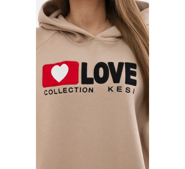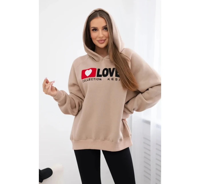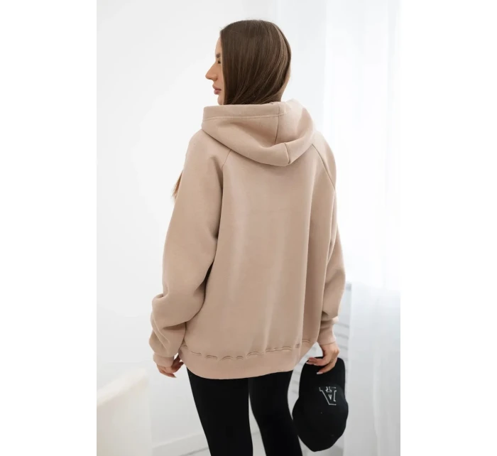 Zateplená bavlněná mikina s kapucí tmavě béžová