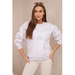 Zateplená bavlněná mikina s ozdobnými mašlemi béžová melanž