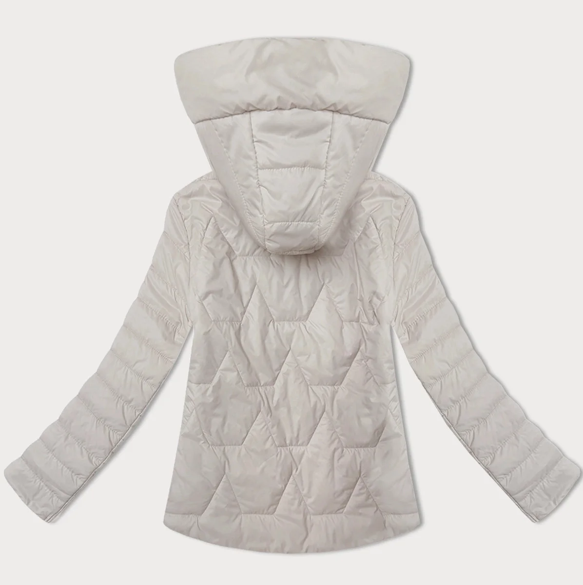zateplená béžová dámská bunda se stojáčkem a kapucí model 20991177 - J.STYLE