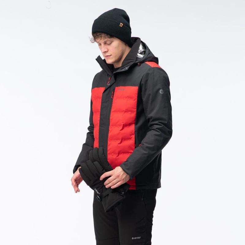 Pánská zateplená bunda Hi-TecHELTEN má voděodolnou membránu s vodním sloupcem 10 000 mm H2O a prodyšnost 1 000 g/m²/24 h. Navíc povrchová úprava DWR aplikovaná na bundu zvyšuje úroveň nepromokavosti vnější tkaniny. Syntetická výplň poskytne tepelný komfort a neztratí své vlastnosti, ani když navlhne. Tepelně reflexní úprava na vnitřní straně pomáhá udržet správnou teplotu, když venku mrzne. Bunda HELTEN má vnitřní kapsu, kapsu na skipas a další kapsu na trupu. Stahovací šňůrka v pase umožňuje upravit střih a chránit tak záda před chladným vzduchem.